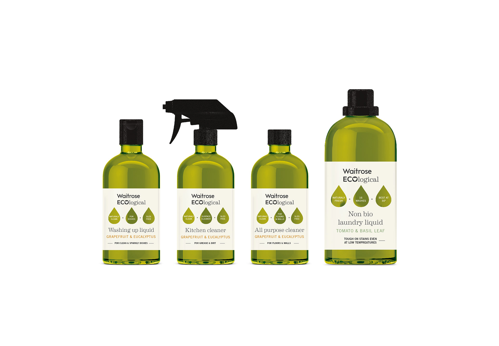 Waitrose ECOlogical, naming, concept design and bespoke tinted PET packaging on sale 2017