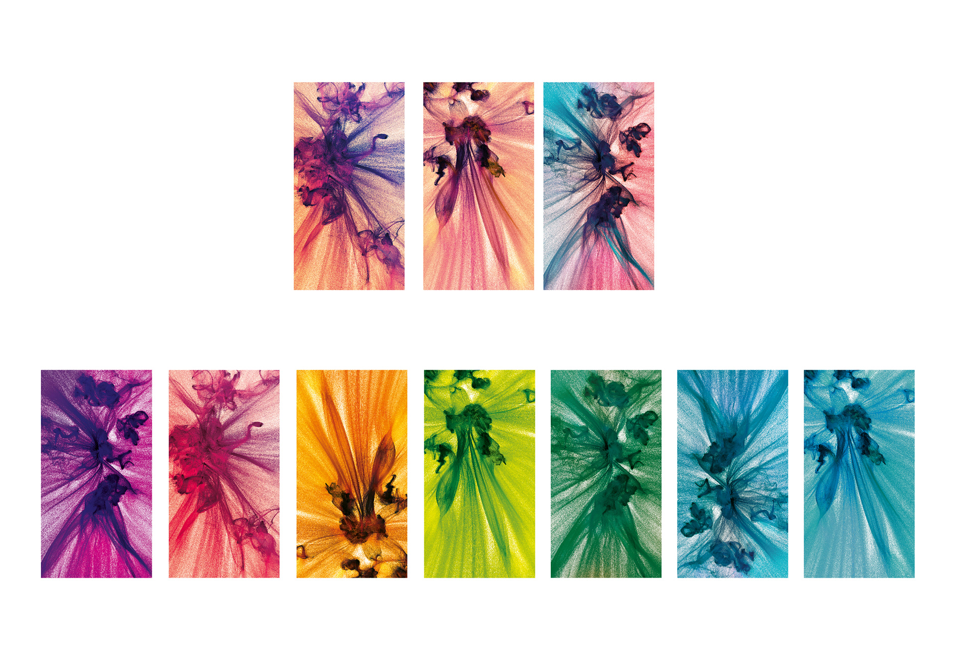 Illustrations from digital algorithms by J.R. Schmitt (top line), coloured to protein groups